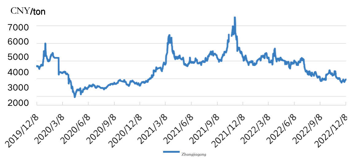 В течение периода (20221202-1208) этого цикла рынок полиэстера в целом колебался вверх и вниз со смешанными тенденциями рыночных цен и рыночные сделки.беспорядочный.С точки зрения восходящего потока, в этот период рынок взвешивает ожидания ОПЕК + стратегия сокращения производства и торможение спроса от глобальной локальной эпидемии.Несмотря на то что ОПЕК+ настаивает на Сокращение добычи и коммерческие запасы сырой нефти в США продолжают снижаться, рынок обеспокоен тем, что ФРС может по-прежнему агрессивно повышать процентные ставки.Запасы рафинированной нефти Значительный рост, наложенный на неослабевающие опасения рынка по поводу глобального экономического спада, резко упал в течение этого периода на европейскую и американскую сырую нефть, а совокупные затраты относительно отрицательные.С точки зрения прямого сырья, по состоянию на Декабрь 8 , рыночная цена ПТА упал до 5095 юань/тонна .