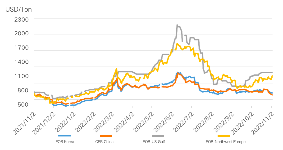тип | FOB Корея | CFR Китай | FOB США | FOB Европа |